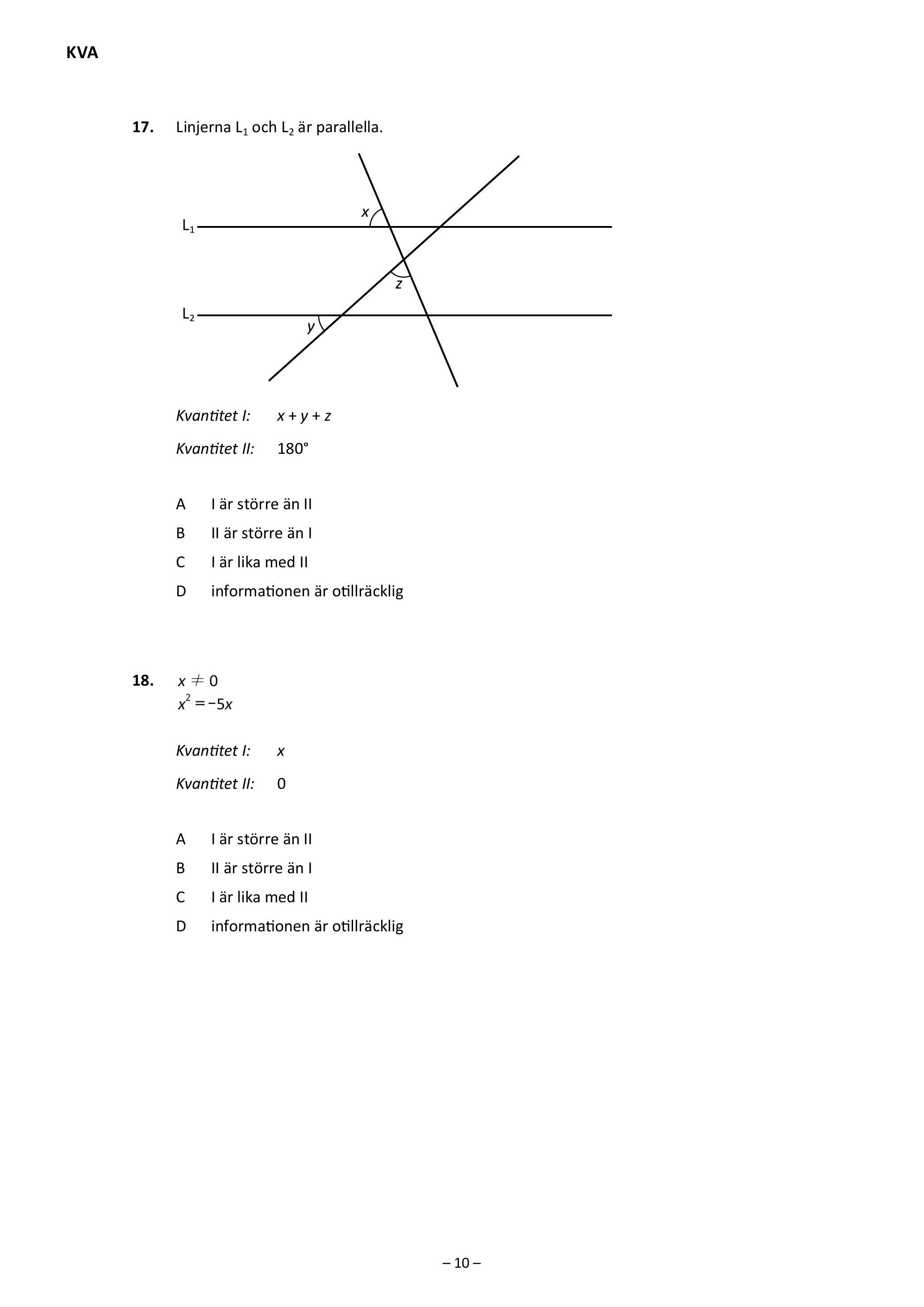 Här är ett exempel på en fråga från KVA: